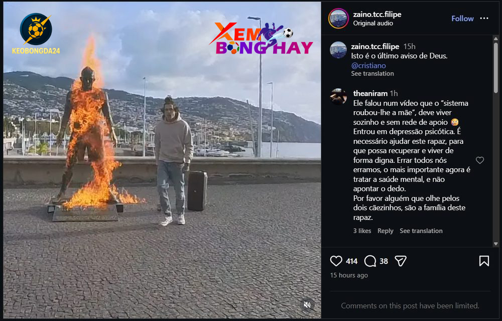 Một sự việc gây sốc vừa xảy ra tại đảo Madeira (Bồ Đào Nha), quê hương của Cristiano Ronaldo, khi bức tượng đồng của siêu sao bóng đá này bị châm lửa đốt ngay trước Bảo tàng CR7 ở thủ phủ Funchal  – Keobongda24.