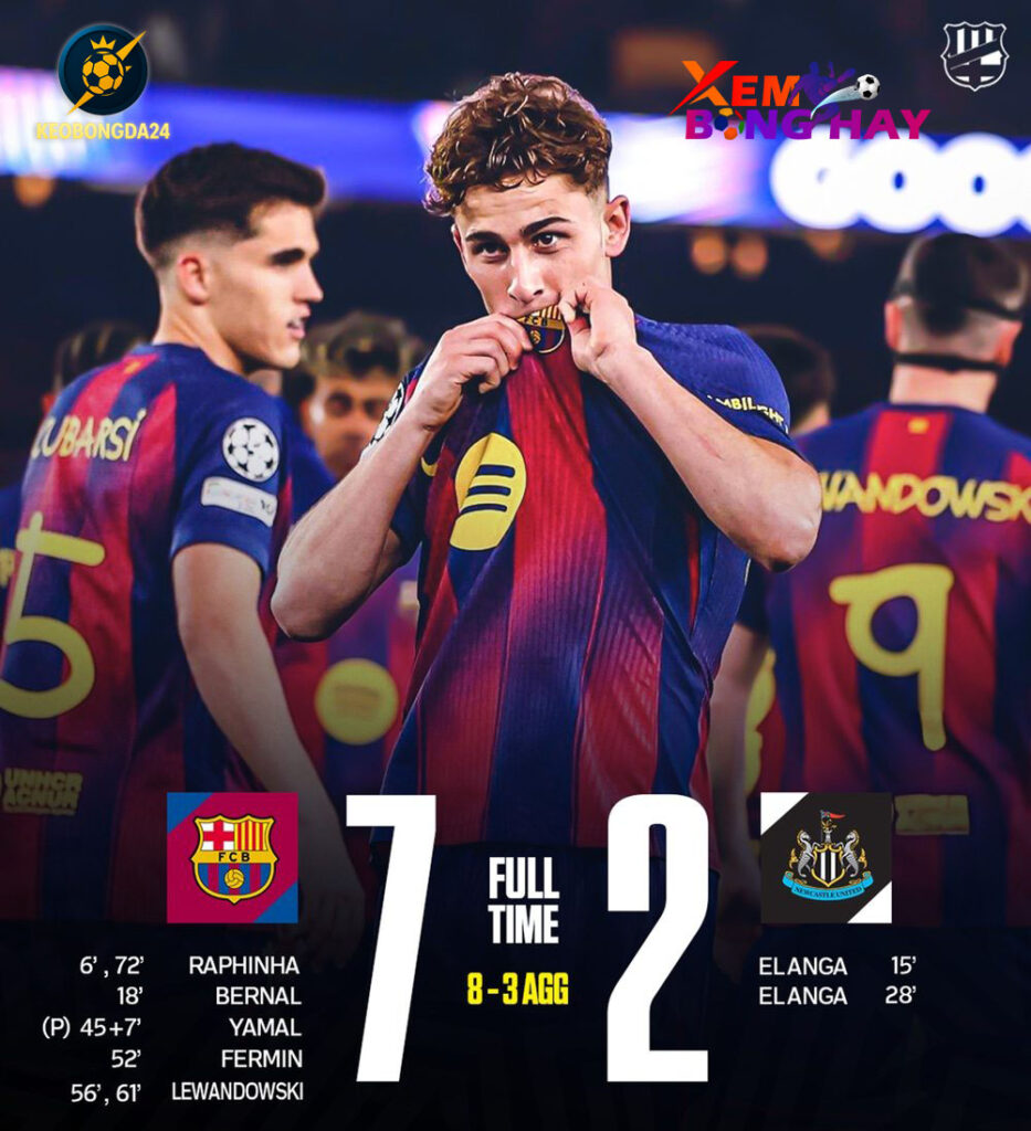 Sau hiệp đầu tương đối cân bằng, Barcelona đã bùng nổ đến khó tin sau giờ nghỉ để khép lại trận đấu lượt về vòng 1/8 Champions League gặp Newcastle với tỷ số… 7-2 – Keobongda24.