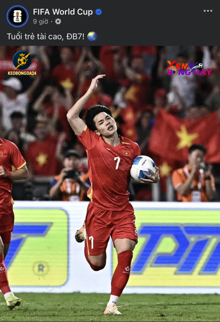 Fanpage FIFA World Cup vừa đăng tải bài viết vinh danh tiền đạo Nguyễn Đình Bắc, nhân tố chủ lực của U22 Việt Nam tại SEA Games 33, với dòng trạng thái bằng tiếng Việt: “Tuổi trẻ tài cao, ĐB7 (Đình Bắc 7)“.