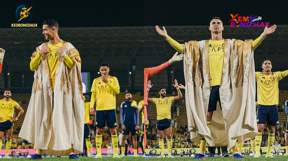 Ngôi sao Cristiano Ronaldo tiếp tục khiến người hâm mộ chú ý không chỉ bằng cú đúp giúp Al Nassr thắng đậm, mà còn bởi khoảnh khắc khoác lên mình chiếc Bisht trang trọng – Keobongda24.