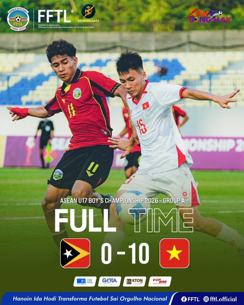 Chiều 16/4, U17 Việt Nam đã tạo nên chiến thắng đậm nhất từ đầu giải khi vùi dập U17 Timor Leste với tỷ số 10-0 trong khuôn khổ bảng A giải U17 Đông Nam Á 2026 – Keobongda24.