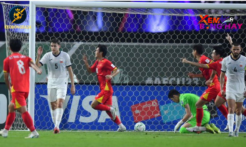 Khoảnh khắc mang tính bước ngoặt của trận đấu xuất hiện ở phút 87. Từ quả đá phạt của Đình Bắc, hậu vệ Phạm Lý Đức đã tung ra đường tạt bóng khó chịu vào khu vực cấm địa. Dù ở tư thế không thuận lợi, Lê Văn Thuận vẫn thể hiện sự nhạy bén của một “sát thủ” khi ngả người đánh đầu đầy tinh tế. Bóng chạm chân cầu thủ U23 Kyrgyzstan, đổi quỹ đạo và bay thẳng vào lưới, khiến thủ môn đối phương hoàn toàn bó tay.