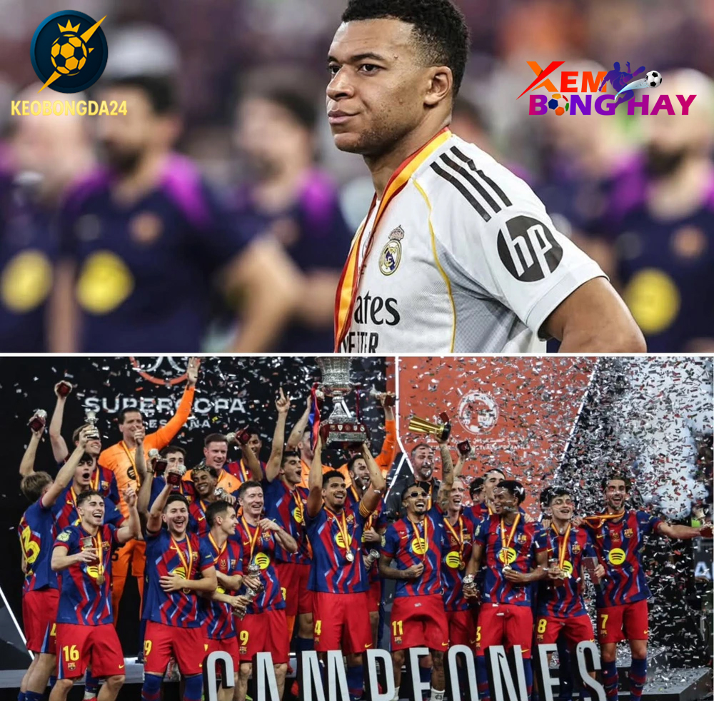 Thất bại trước Barcelona trong trận chung kết Siêu cúp Tây Ban Nha 2026 không chỉ khiến Real Madrid trắng tay danh hiệu đầu tiên của năm, mà còn đẩy Kylian Mbappe vào tâm điểm chỉ trích vì hành động bị cho là thiếu tinh thần fair-play sau trận đấu – Keobongda24.