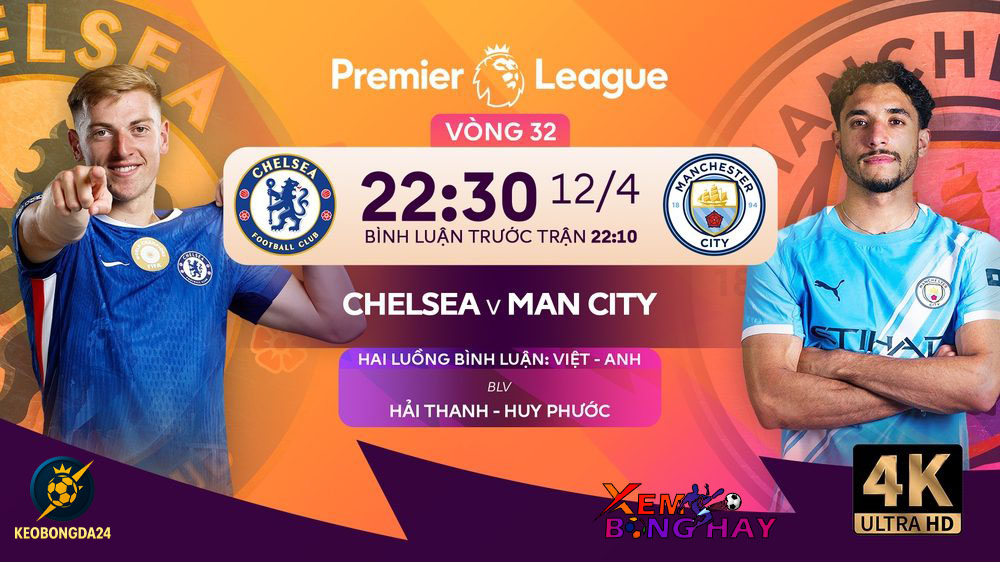 Trực tiếp bóng đá Chelsea vs Man City (22h30, 12/4), giải Ngoại hạng Anh. Cập nhật diễn biến, kết quả trận đấu Chelsea vs Man City ở vòng 32 Ngoại hạng Anh – Keobongda24.